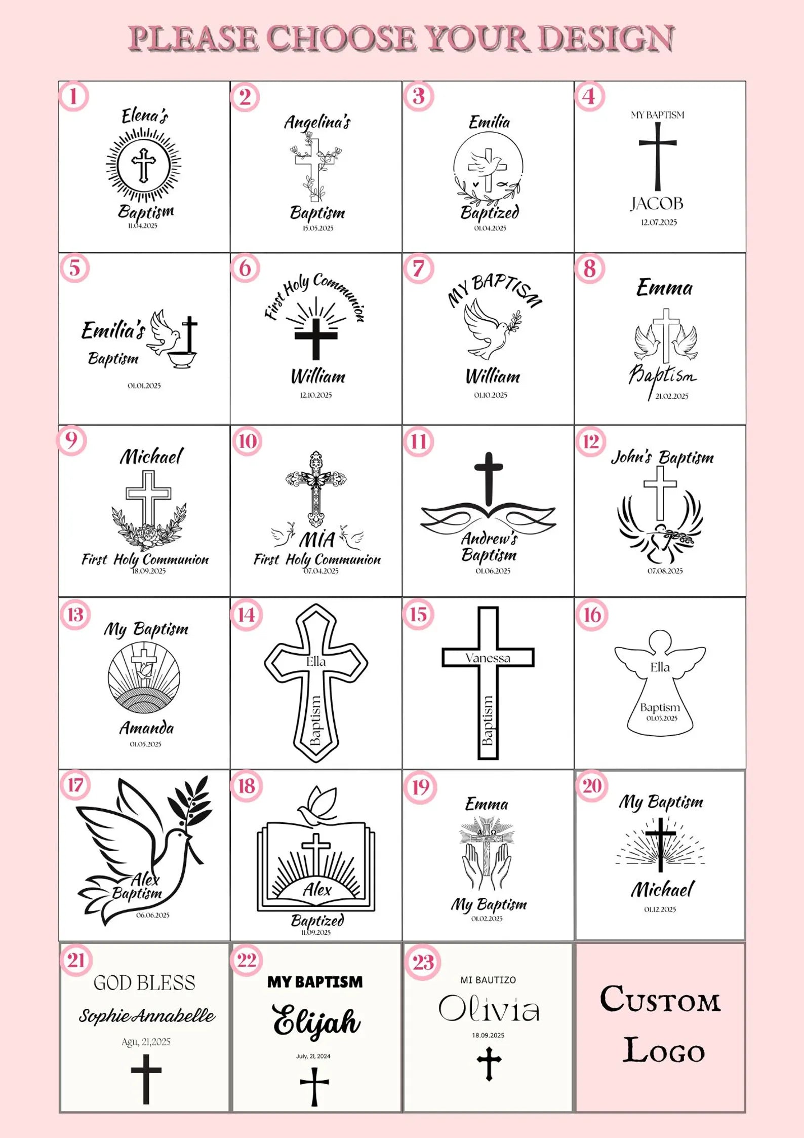 • Personalized for You – Custom designs with names, dates, and faith-inspired symbols.